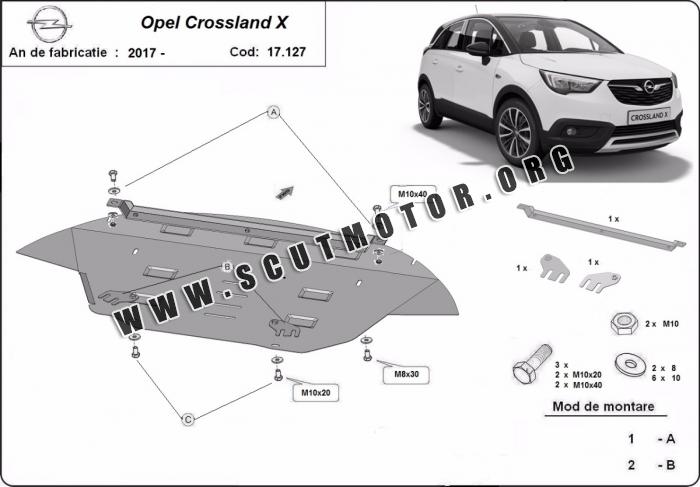 Scutul este nouă și se potrivește perfect pentru toate tipurile de motorizare Opel Crossland X fabricat între ani 2017 - 2026.