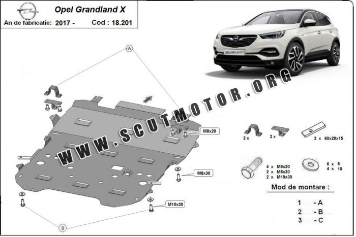 Scutul este nouă și se potrivește perfect pentru toate tipurile de motorizare Opel Grandland X fabricat între ani 2017 - 2026.