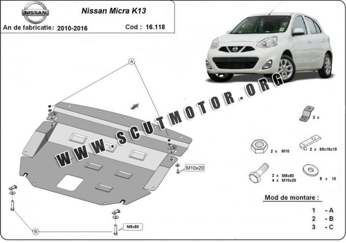 Scutul este nouă și se potrivește perfect pentru toate tipurile de motorizare Nissan Micra fabricat între ani 2010 - 2016.