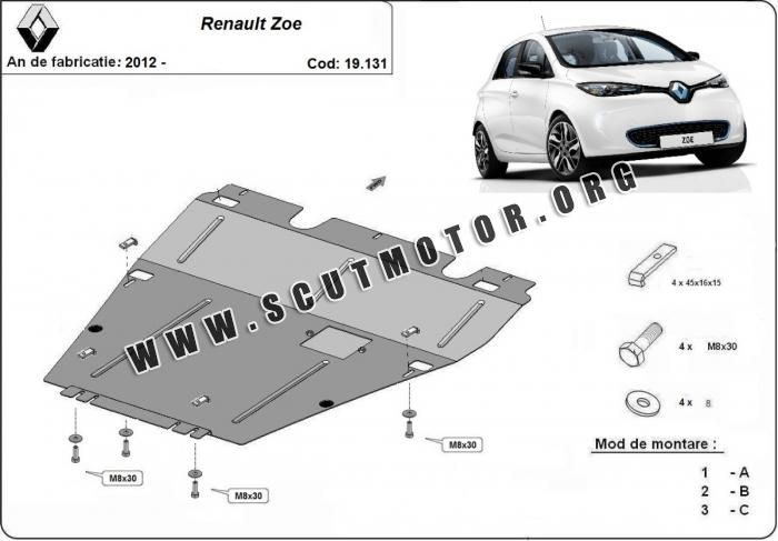 Scutul este nouă și se potrivește perfect pentru toate tipurile de motorizare Renault Zoe fabricat între ani 2017 - 2020.