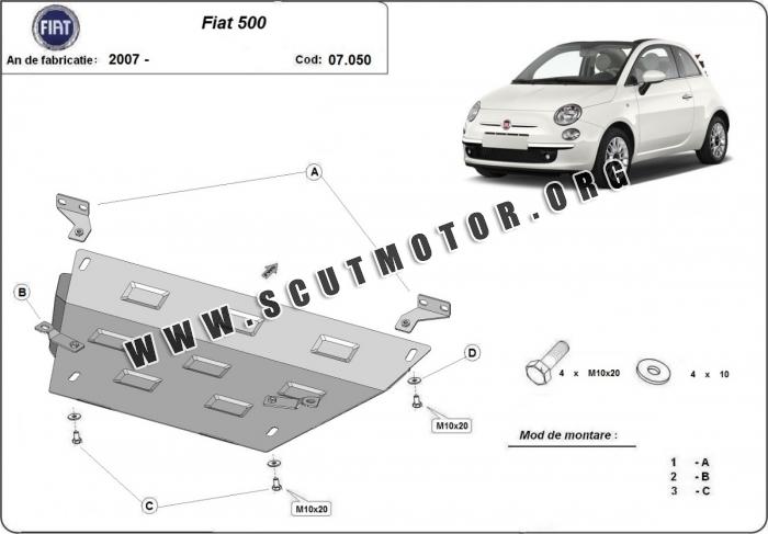 Scutul este nouă și se potrivește perfect pentru toate tipurile de motorizare Fiat 500 fabricat între ani 2007 - 2026.