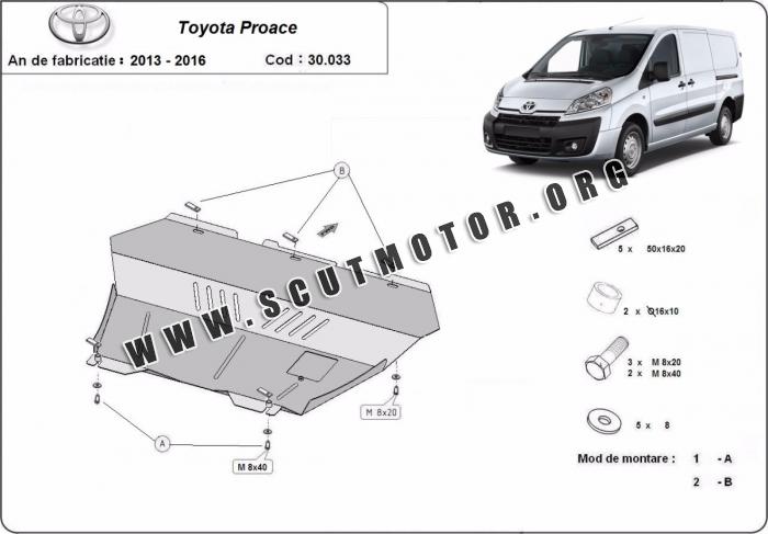 Scutul este nouă și se potrivește perfect pentru toate tipurile de motorizare Toyota Proace fabricat între ani 2013 - 2016.