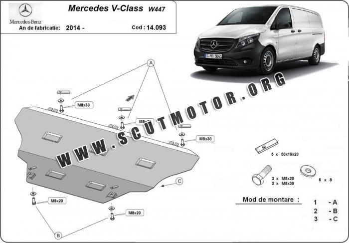 Scutul este nouă și se potrivește perfect pentru tipurile de motorizare 4x2, 1.6 D - Mercedes V-Class W447 fabricat între ani 2014 - 2026