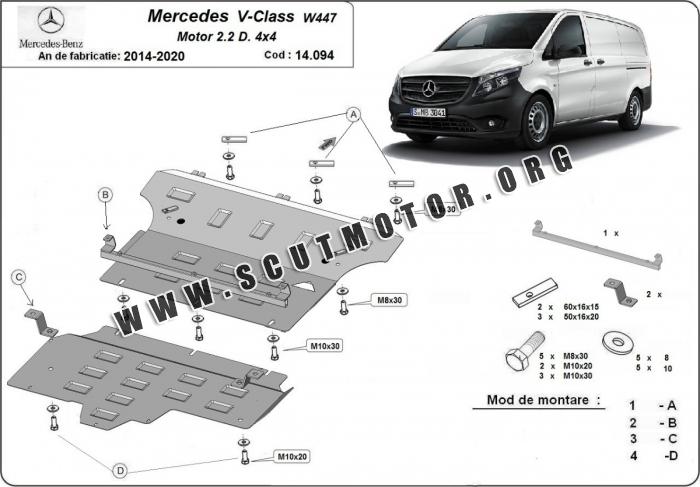 Scutul este nouă și se potrivește perfect pentru tipurile de motorizare 2.2 D, 4x4 - Mercedes V-Class W447 fabricat între ani 2014 - 2020
