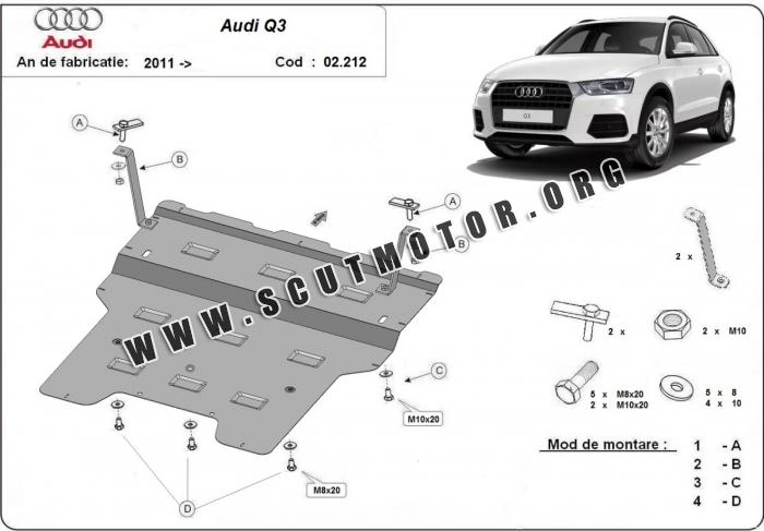 Scutul este nouă și se potrivește perfect pentru toate tipurile de motorizare Audi Q3 fabricat între ani 2012 - 2018.