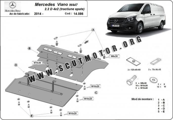 Scutul este nouă și se potrivește perfect pentru tipurile de motorizare 2.2 D, 4x2 (tracțiune spate) - Mercedes Viano W447 fabricat între ani 2014 - 2026