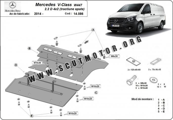 Scutul este nouă și se potrivește perfect pentru tipurile de motorizare 2.2 D, 4x2 (tracțiune spate) - Mercedes V-Class W447 fabricat între ani 2014 - 2020