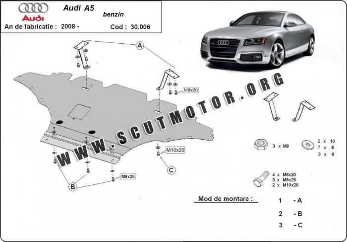 Scutul este nouă și se potrivește perfect pentru toate tipurile de motorizare Audi A5 fabricat între ani 2008 - 2016.