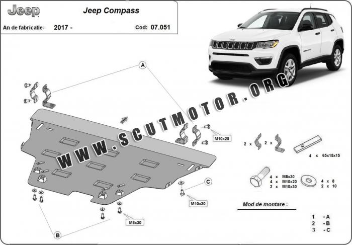 Scutul este nouă și se potrivește perfect pentru toate tipurile de motorizare Jeep Compass fabricat între ani 2017 - 2026.