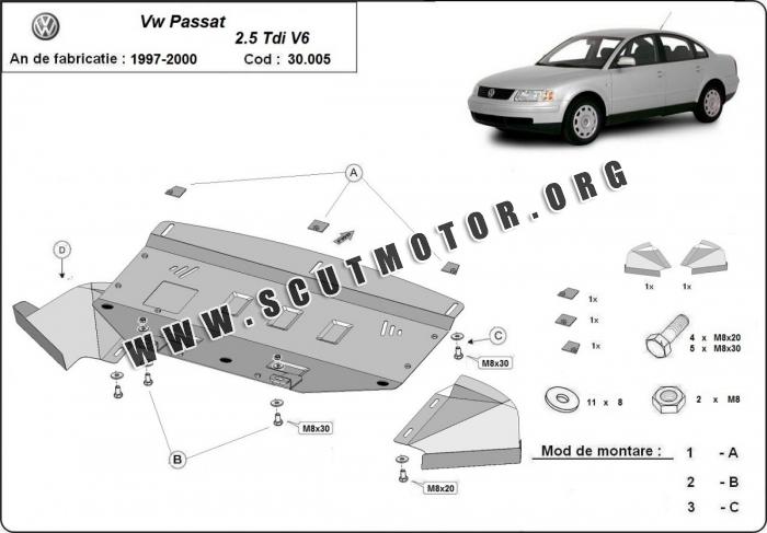Scutul este nouă și se potrivește perfect pentru tipurile de motorizare 2.5 TDI V6 - VW Passat B5 fabricat între ani 1997 - 2000