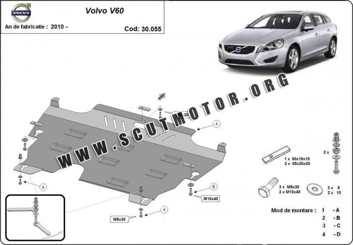 Scutul este nouă și se potrivește perfect pentru toate tipurile de motorizare Volvo V60 fabricat între ani 2010 - 2018.