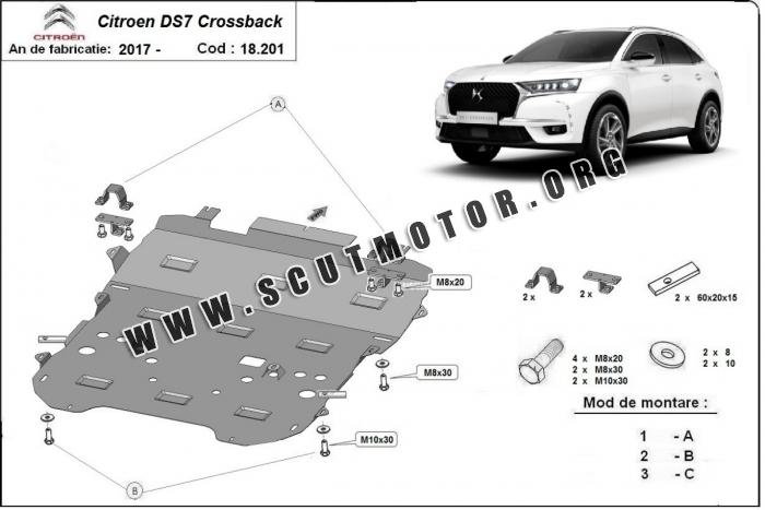 Scutul este nouă și se potrivește perfect pentru toate tipurile de motorizare Citroen DS7 Crossback fabricat între ani 2017 - 2026.