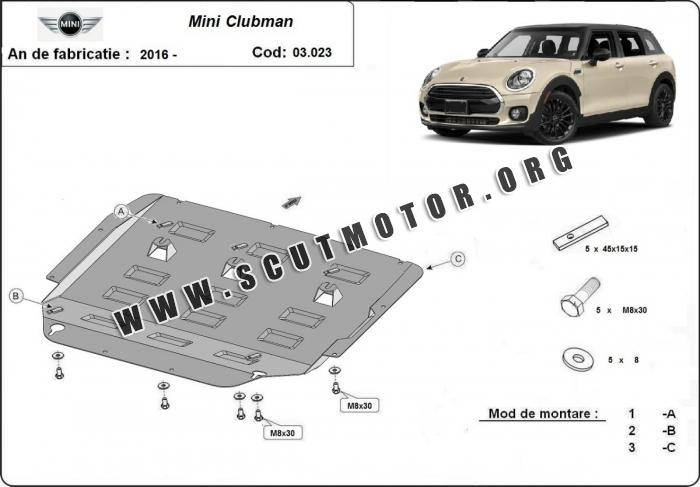 Scutul este nouă și se potrivește perfect pentru toate tipurile de motorizare Mini Clubman fabricat între ani 2016 - 2026.