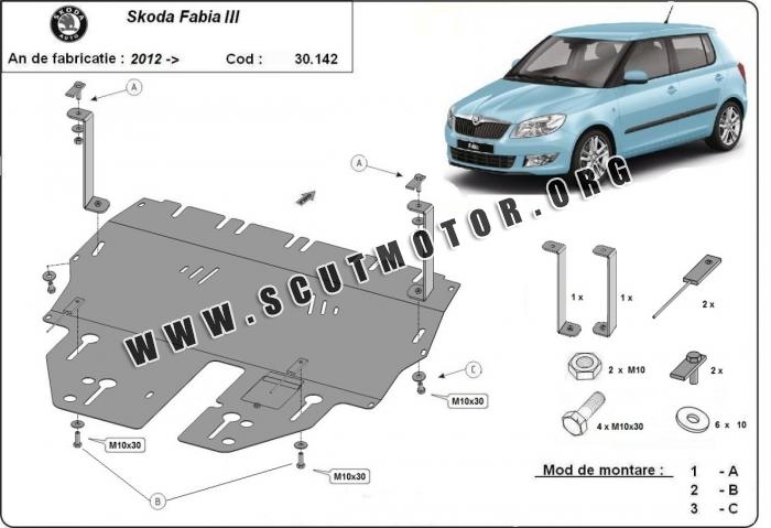 Scutul este nouă și se potrivește perfect pentru toate tipurile de motorizare Skoda Fabia fabricat între ani 2015 - 2021.