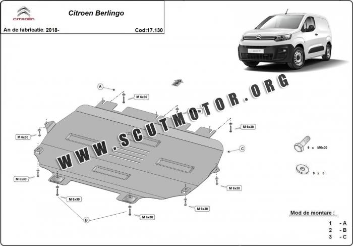 Scutul este nouă și se potrivește perfect pentru toate tipurile de motorizare Citroen Berlingo fabricat între ani 2018 - 2026.