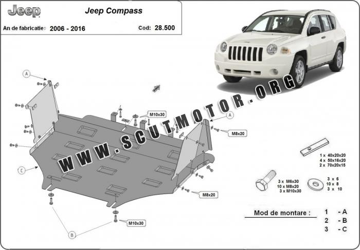 Scutul este nouă și se potrivește perfect pentru toate tipurile de motorizare Jeep Compass fabricat între ani 2006 - 2016.