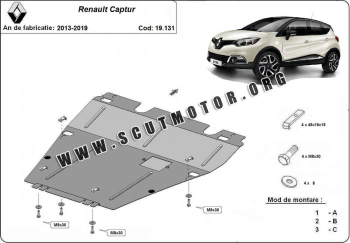 Scutul este nouă și se potrivește perfect pentru toate tipurile de motorizare Renault Captur fabricat între ani 2013 - 2019.