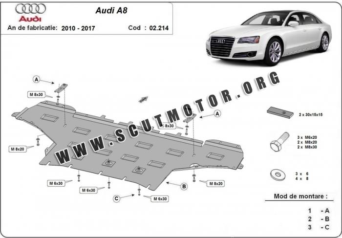 Scutul este nouă și se potrivește perfect pentru toate tipurile de motorizare Audi A8 fabricat între ani 2010 - 2017.