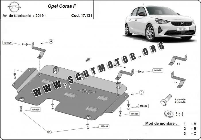 Scutul este nouă și se potrivește perfect pentru toate tipurile de motorizare Opel Corsa F fabricat între ani 2019 - 2026.