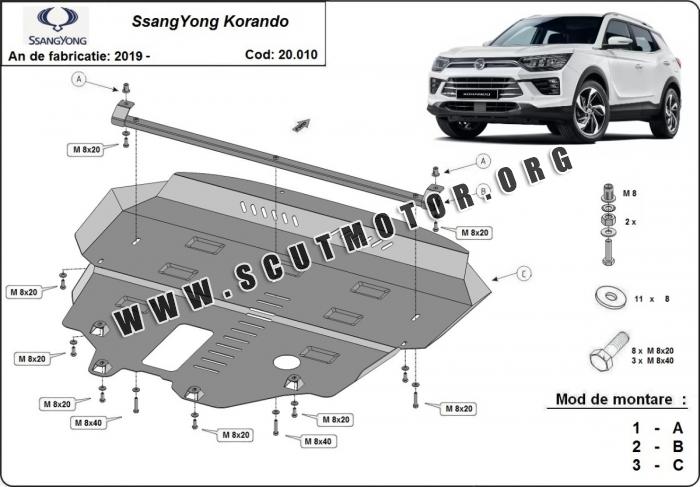 Scutul este nouă și se potrivește perfect pentru toate tipurile de motorizare SsangYong Korando fabricat între ani 2019 - 2026.