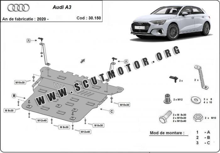 Scutul este nouă și se potrivește perfect pentru toate tipurile de motorizare Audi A3 fabricat între ani 2020 - 2026.