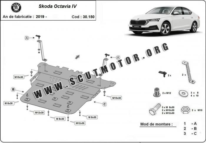 Scutul este nouă și se potrivește perfect pentru toate tipurile de motorizare Skoda Octavia 4 fabricat între ani 2019 - 2026.