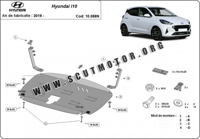Scutul este nouă și se potrivește perfect pentru toate tipurile de motorizare Hyundai i10 fabricat între ani 2019 - 2026.