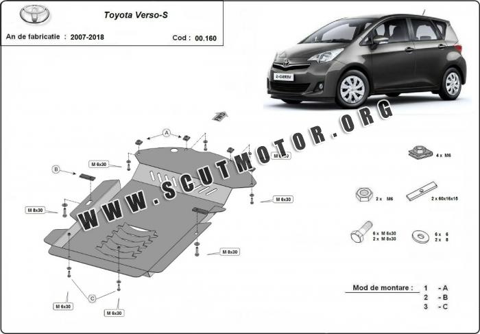 Scutul este nouă și se potrivește perfect pentru toate tipurile de motorizare Toyota Verso-S fabricat între ani 2007 - 2018.