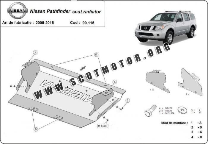 • Scutul este nouă și se potrivește perfect pentru toate tipurile de motorizare Nissan Pathfinder fabricat între ani 2005 - 2015.