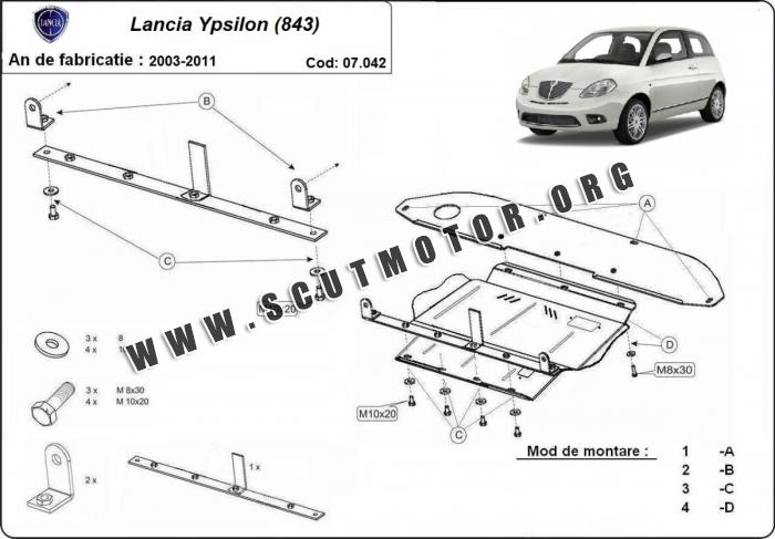 Scutul este nouă și se potrivește perfect pentru toate tipurile de motorizare Lancia Ypsilon (843) fabricat între ani 2003 - 2011.