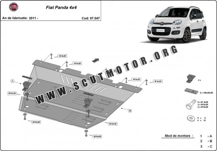 Scutul este nouă și se potrivește perfect pentru toate tipurile de motorizare Fiat Panda 4x4 fabricat între ani 2011 - 2026.