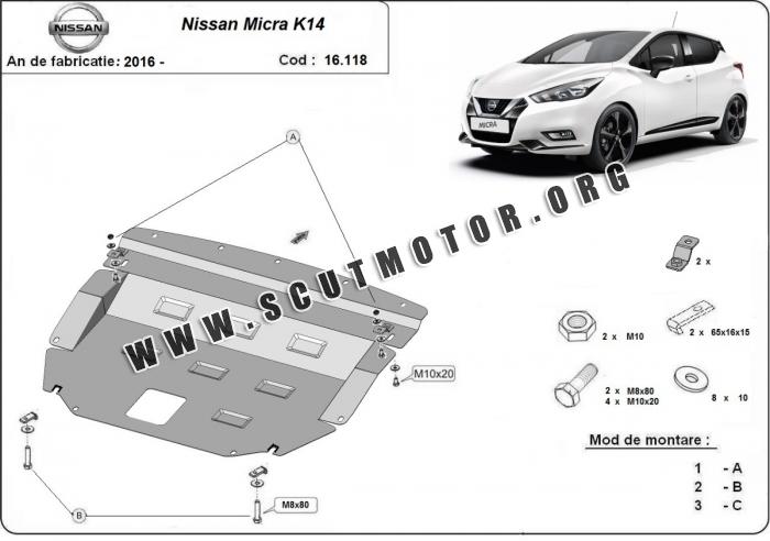 • Scutul este nouă și se potrivește perfect pentru toate tipurile de motorizare Nissan Micra fabricat între ani 2016 - 2026.