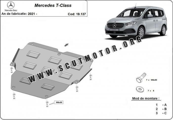 Scutul este nouă și se potrivește perfect pentru toate tipurile de motorizare Mercedes T-Class fabricat între ani 2021 - 2026.