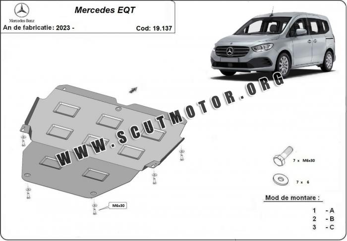 Scutul este nouă și se potrivește perfect pentru toate tipurile de motorizare Mercedes EQT fabricat între ani 2023 - 2026.