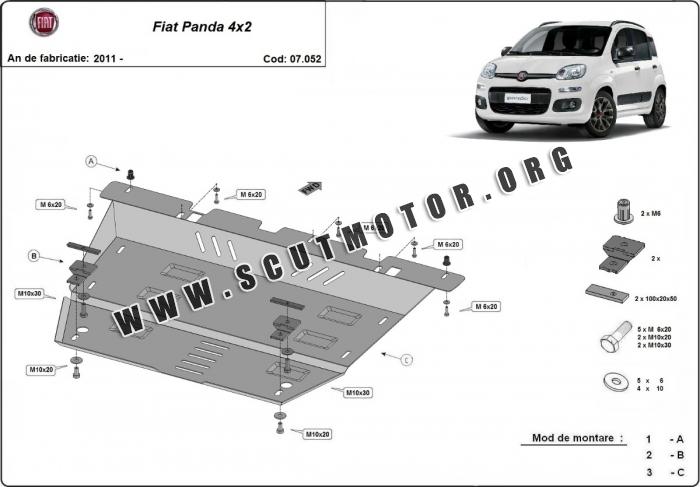 Scutul este nouă și se potrivește perfect pentru toate tipurile de motorizare Fiat Panda fabricat între ani 2011 - 2026.