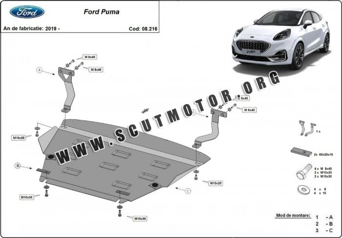 Scutul este nouă și se potrivește perfect pentru toate tipurile de motorizare Ford Puma fabricat între ani 2019 - 2026.