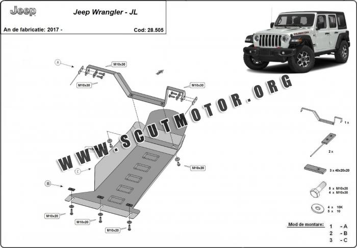 Scutul este nouă și se potrivește perfect pentru toate tipurile de motorizare Jeep Wrangler fabricat între ani 2017 - 2026.