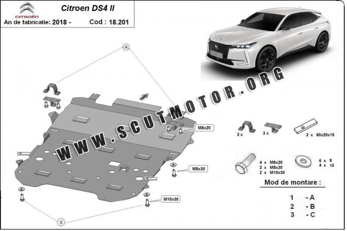 Scutul este nouă și se potrivește perfect pentru toate tipurile de motorizare Citroen DS4 fabricat între ani 2021 - 2026.