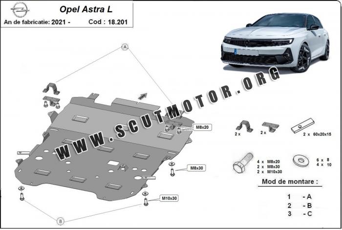 Scutul este nouă și se potrivește perfect pentru toate tipurile de motorizare Opel Astra fabricat între ani 2021 - 2026.