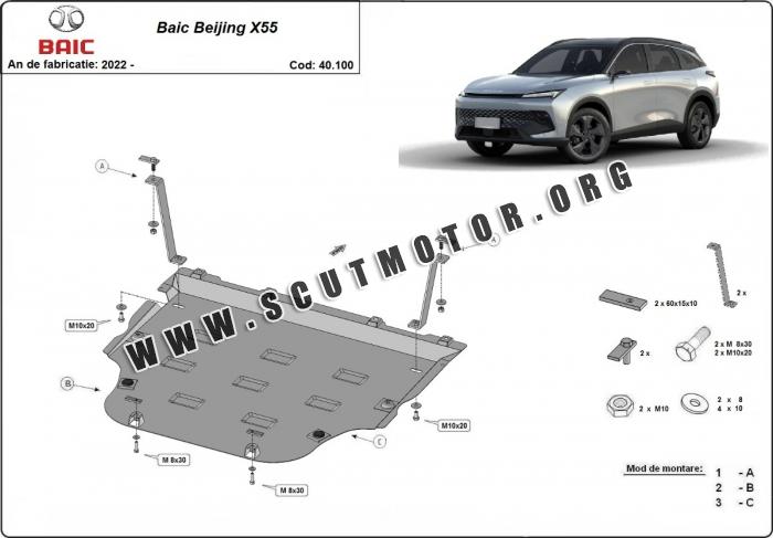 Scutul este nouă și se potrivește perfect pentru toate tipurile de motorizare Baic Beijing X55 fabricat între ani 2022 - 2026.
