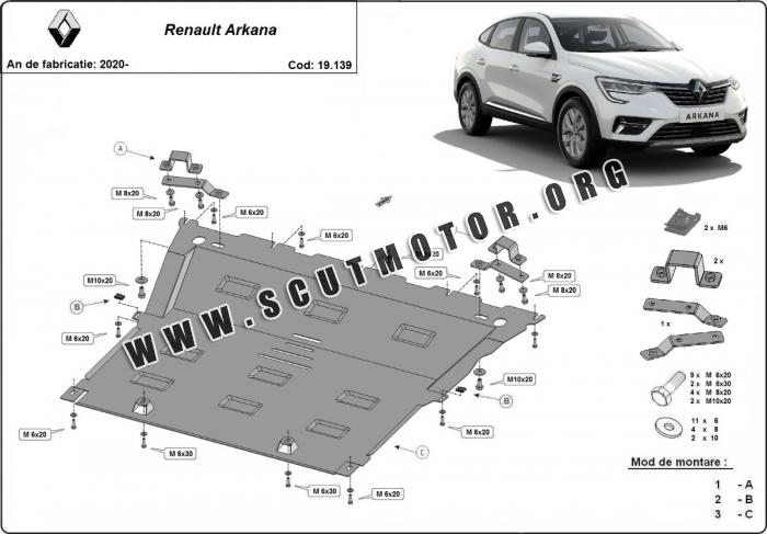 Scutul este nouă și se potrivește perfect pentru toate tipurile de motorizare Renault Arkana fabricat între ani 2020 - 2026.