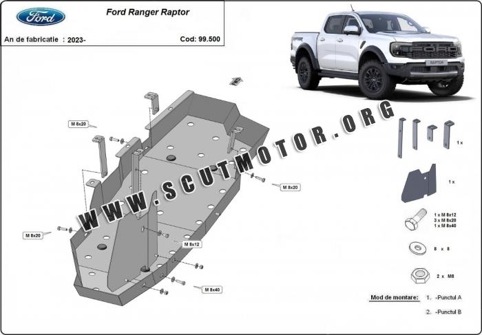 Scutul este nouă și se potrivește perfect pentru toate tipurile de motorizare Ford Ranger Raptor fabricat între ani 2023 - 2026.