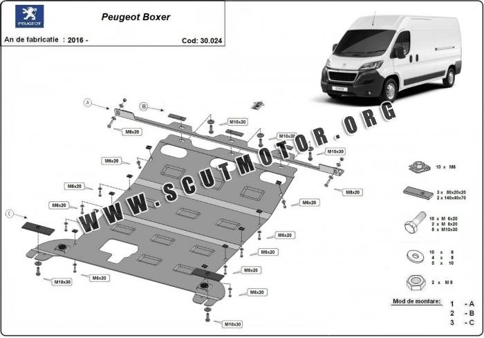 Scutul este nouă și se potrivește perfect pentru toate tipurile de motorizare Peugeot Boxer fabricat între ani 2016 - 2026.