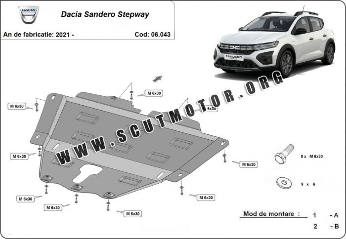 Scutul este nouă și se potrivește perfect pentru toate tipurile de motorizare Dacia Sandero Stepway fabricat între ani 2021 - 2026.