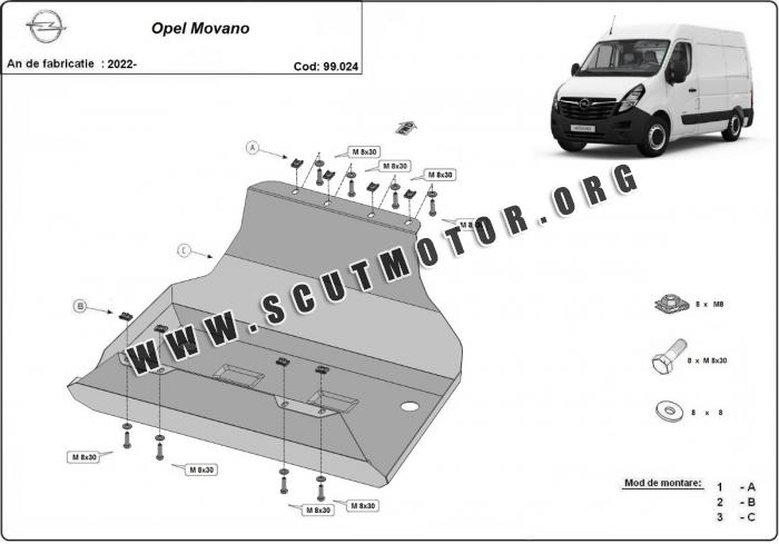 Scutul este nouă și se potrivește perfect pentru toate tipurile de motorizare Opel Movano fabricat între ani 2022 - 2026.