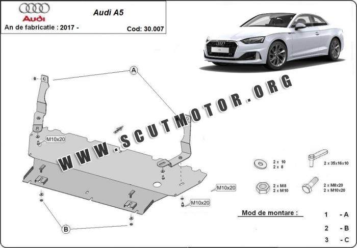 Scutul este nouă și se potrivește perfect pentru toate tipurile de motorizare Audi A5 fabricat între ani 2017 - 2026.