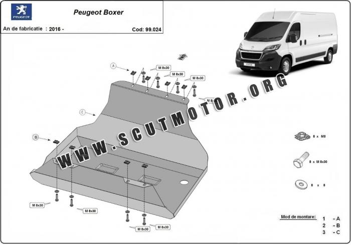 Scutul este nouă și se potrivește perfect pentru toate tipurile de motorizare Peugeot Boxer fabricat între ani 2016 - 2026.
