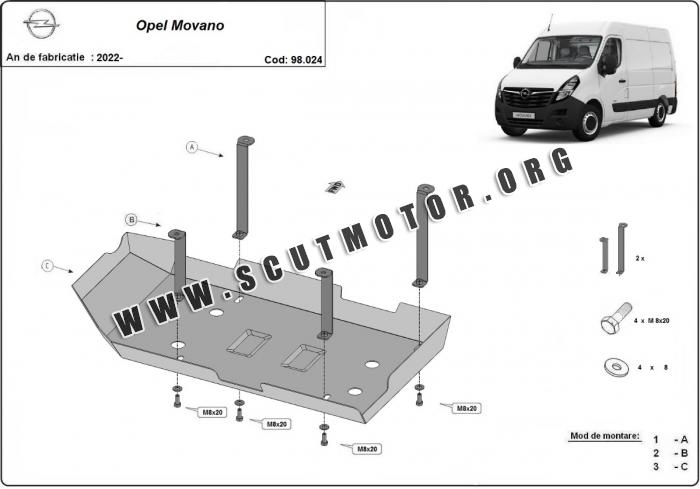 Scutul este nouă și se potrivește perfect pentru toate tipurile de motorizare Opel Movano fabricat între ani 2022 - 2026.