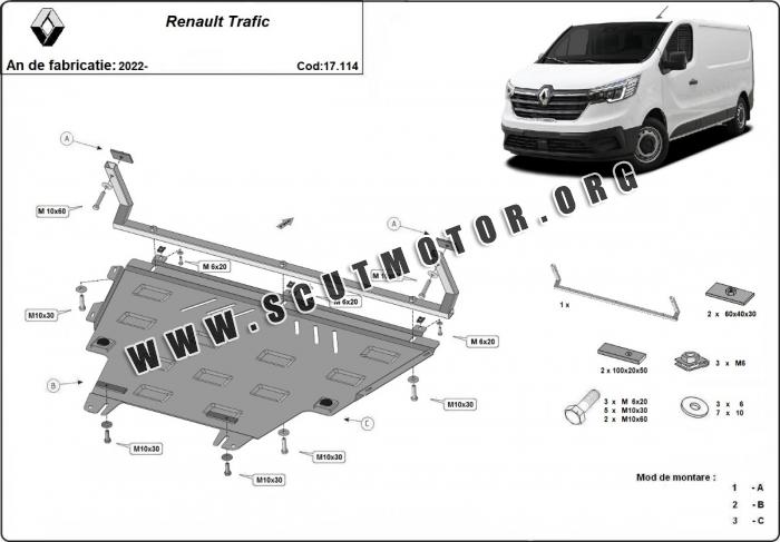 Scutul este nouă și se potrivește perfect pentru toate tipurile de motorizare Renault Trafic fabricat între ani 2022 - 2026.
