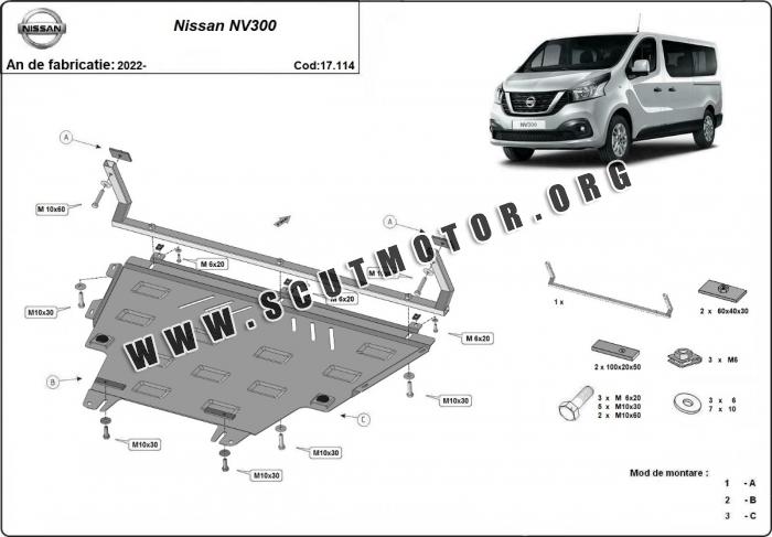 Scutul este nouă și se potrivește perfect pentru toate tipurile de motorizare Nissan NV300 fabricat între ani 2022 - 2026.